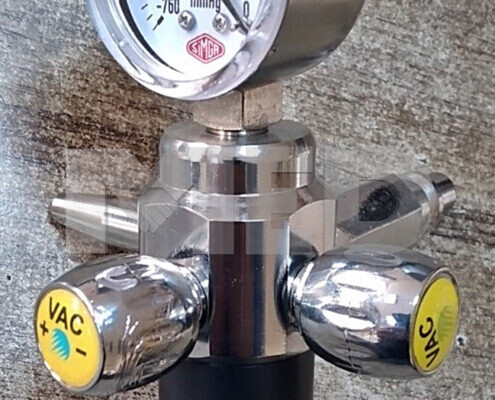 The VENTURI Suction Device ( Ejector ) can be connected either to a source of pressured gas on the wall, using a direct probe or a rail mounting system.