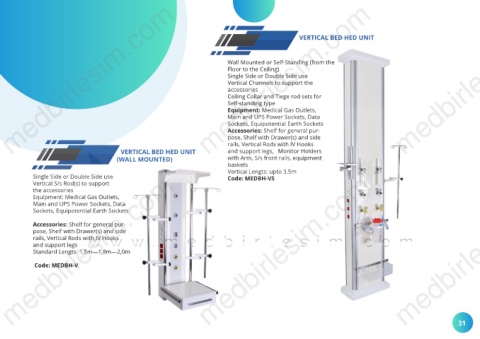 VERTICAL BED HED UNIT and support legs, Monitor Holders